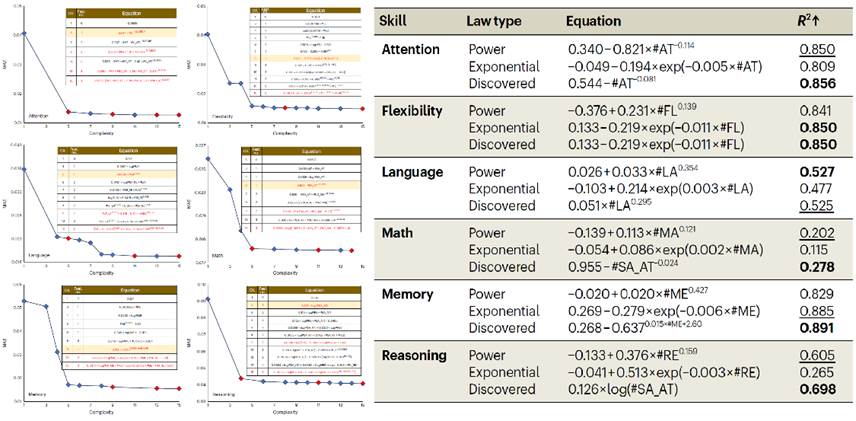 Simulation results show that this method can accurately identify key variables and reconstruct the preset skill acquisition equations within a certain range of noise, validating the effectiveness of the proposed approach. When applied to large-scale real-world cognitive skill training data, the skill acquisition patterns discovered by this method significantly outperform traditional and mainstream learning models in terms of fitness and goodness of fit. Additionally, the method uncovered two new types of cognitive skill acquisition patterns—logarithmic rate and inverse power rate—and confirmed several findings from previous studies.